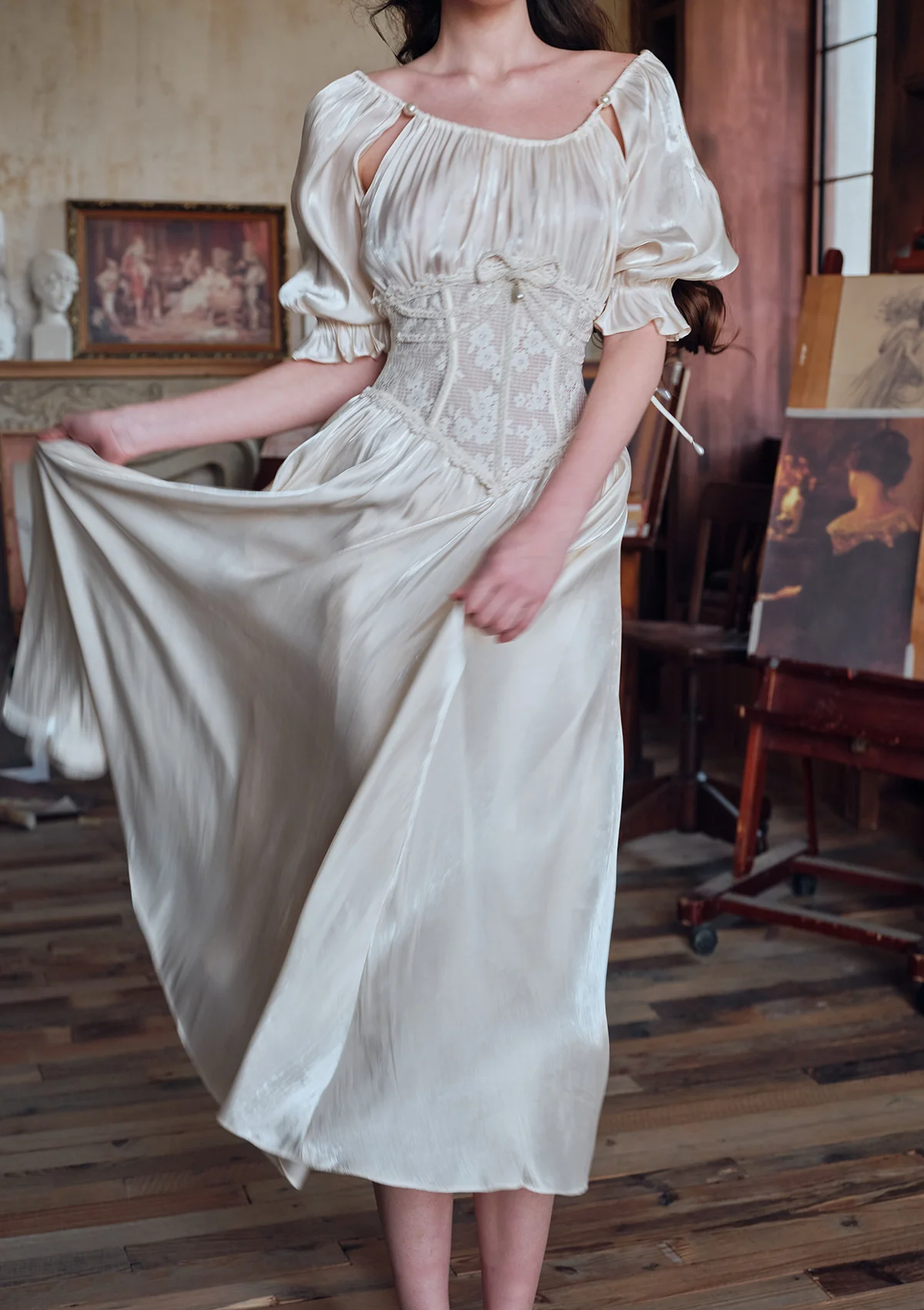 Pair it with vintage lace-up boots and a pearl hair clip for a modern fairytale look, or slip on ballet flats and a silk scarf for everyday enchantment.